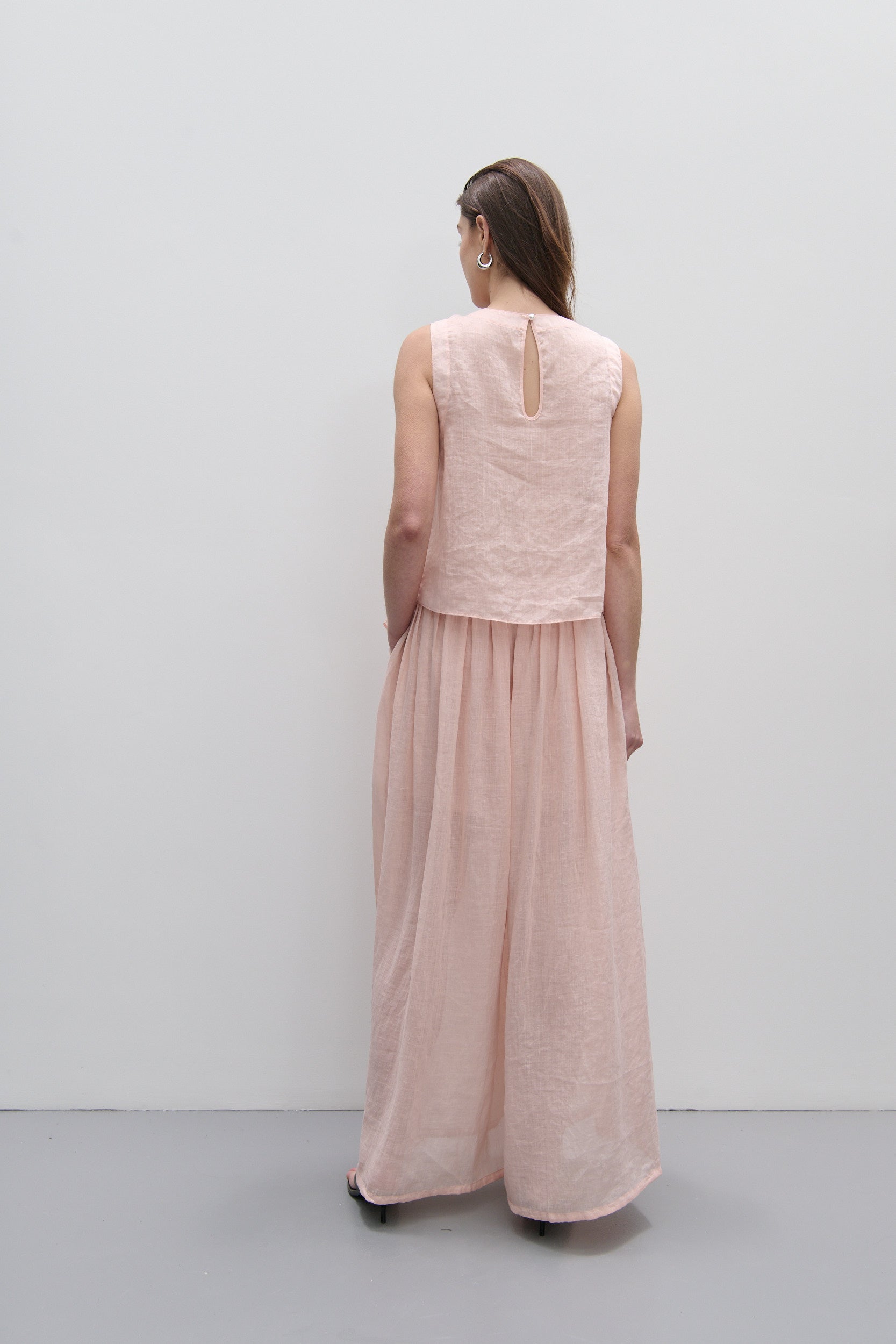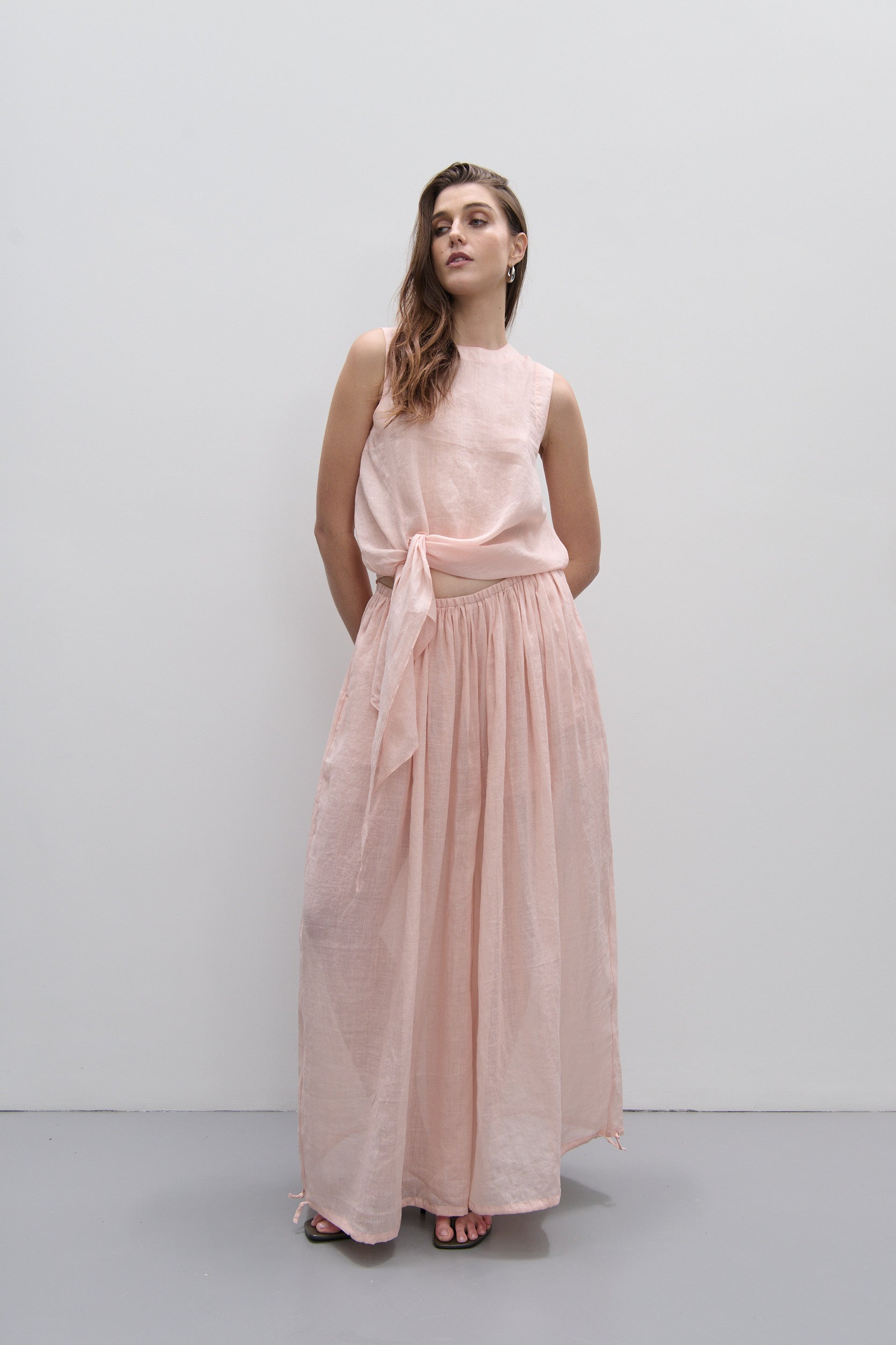 blush loose fit tank in lightweight ramie fabric with asymmetric front hem and keyhole back keyhole. front hem can be worn loose or tied.